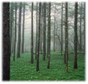 山中湖は標高1000mにあります。皆さんのところでは、見上げる雲の上になりますね。「ああ、あの雲の上で寝たんだな。」って思ってみてください。おかげで、春の訪れはゆっくりです。憧れの気持ちが魔法をかけるのか、どんな小さな春の足音にも心がときめきます。食堂の前に広がる森の木々が芽吹くとき、ある朝一斉にまるで赤ちゃんが力むように真っ赤になってビックリします。そして、一木一草すべてが微笑むように、笑うように躍動しはじめます。ことのほか見事なのはから松で、枝先をつつむ霧さえ染めてしまう蜻蛉の羽の翡翠色です。森の下には一面にスミレの花が敷きめ、貴重な鈴虫草の群落が浮島のように点在し、不思議な花をつけています。珍しい東国三つ葉ツツジや、可憐な乙女が恥じらうような富士桜が咲くのもこの時期です。歌のつぼみのような小鳥たちを迎える準備ができました。