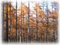 秋も少しずつ深まり、唐松に付いたツタの葉が、紅葉の走りのように、色づいてきました。